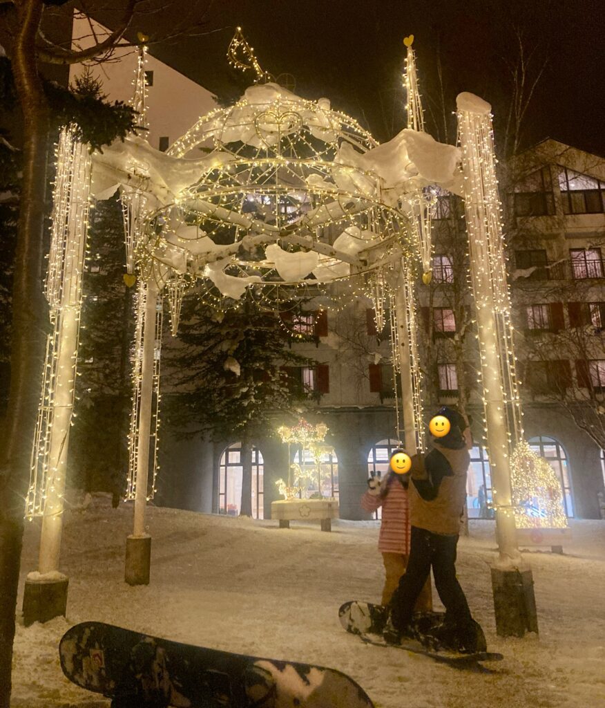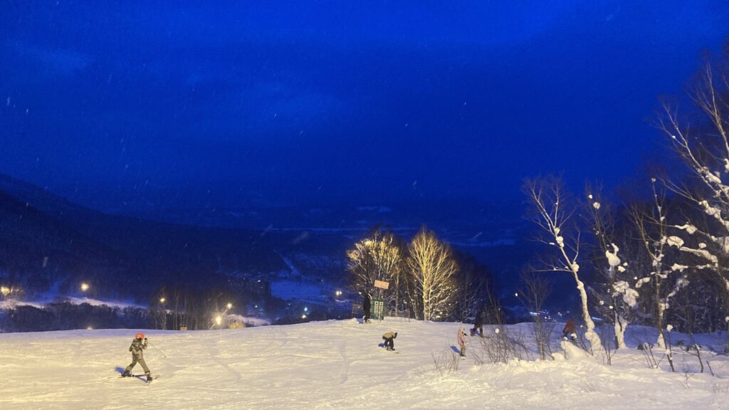 暗闇に照らされたゲレンデは幻想的で、雪とイルミネーションのコントラストが美しい景色を作っていました。